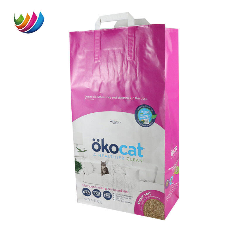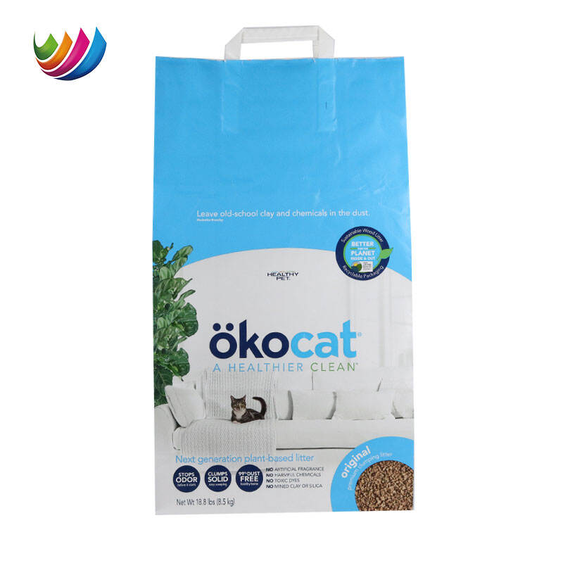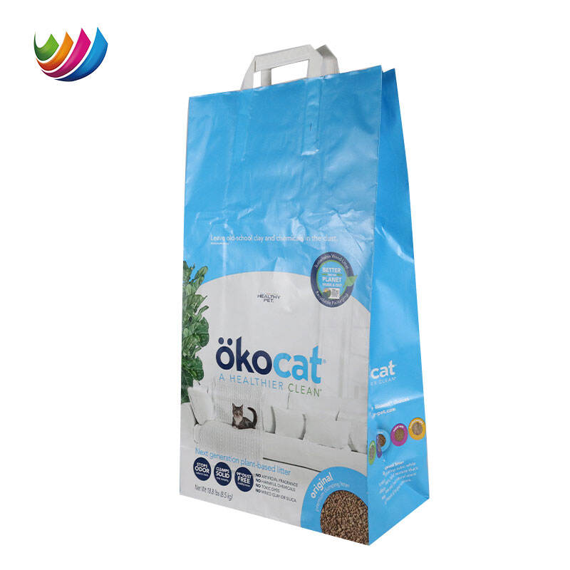 Hot Stamping Cat Dog Pet Food Bag Kraft Paper Custom logo Biodegradable Pet Cat Dog Treat Food Sustainable Packaging Handle Bag